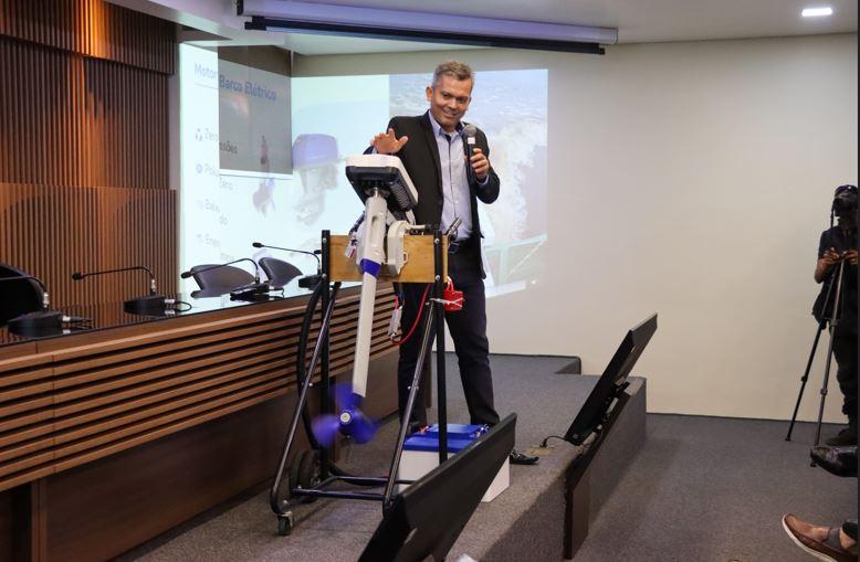 Livoltek's industrial manager, Márcio Sousa, presented the company's innovation: an electric sterndrive motor, which is expected to begin production at the Manaus Industrial Park (PIM) in 2026. The manager explained that the creation is designed for riverside communities and to reduce river pollution and combustion. Currently, sterndrive motors are powered by gasoline or diesel.