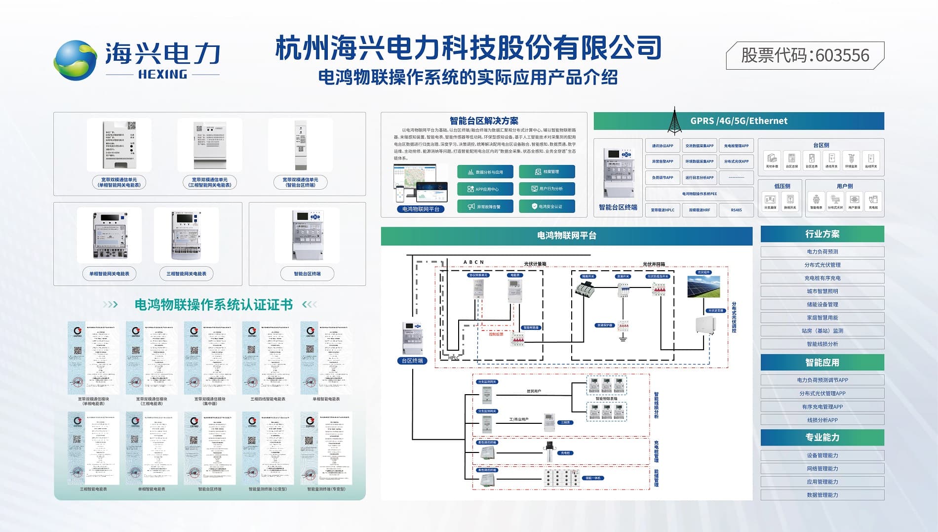 海興電力在電鴻生態建設中取得了實質性進展。公司針對電鴻生態推出了多款核心產品,包括:智能臺區終端、寬帶雙模通信模塊、單相智能網關電能表、三相智能網關電能表。這些產品均成功獲得了電鴻物聯操作系統認證證書,體現了海興電力在產品研發與技術適配方面的強大實力。